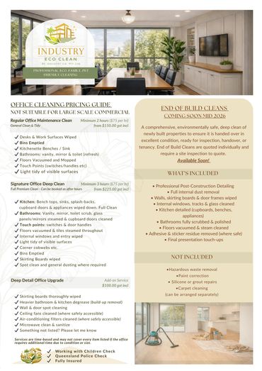We are available for afterhours cleans from 9pm (commercial only). Please contact us for more information.